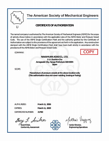 ASME<Boiler and Pressure Vessel Certification>